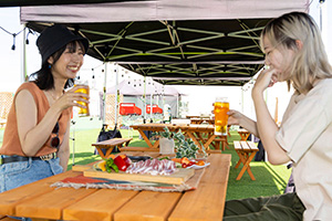 手ぶらでお越しいただき、準備も後片付けも不要のフリードリンク付きバーベキュープランを2プランの中からお選び頂けます。